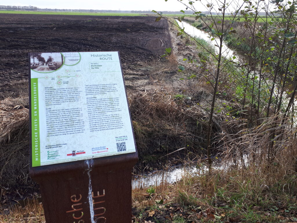 In de buurtschop Medhuzen bi’j Oosterwoolde staot an de Rijweg een bod van een historische route om Appelsche, De Fochtel en Raevenswoold henne. Die route is een prachtig initiatief van de saemenwarkende dörpen Raevenswoold, Appelsche (inkl. Appelsche-Boven) en De Fochtel. Op et bod wodt hier en daor ok Stellingwarfs bruukt, en dat vienen we netuurlik ok hiel mooi. Et zol liekewel nog mooier west wezen as dat konsekwent gebeurd was. Zo wodt de buurtschop Medhuzen in et Nederlaans vermeld, mar De Tille in et Stellingwarfs. Et Grootdiep wodt twie keer nuumd, ienkeer mit de juuste schriefwieze, en ien keer as Groot Diep. Ok de infermaosie angaonde de Boven-Kuunder is, is krek as de naemsanduding d’r van, wat onzorgvuldig gebeurd. Zoks is vanzels dan toch wel wat spietig… (Foto’s en tekst: Sietske Bloemhoff)